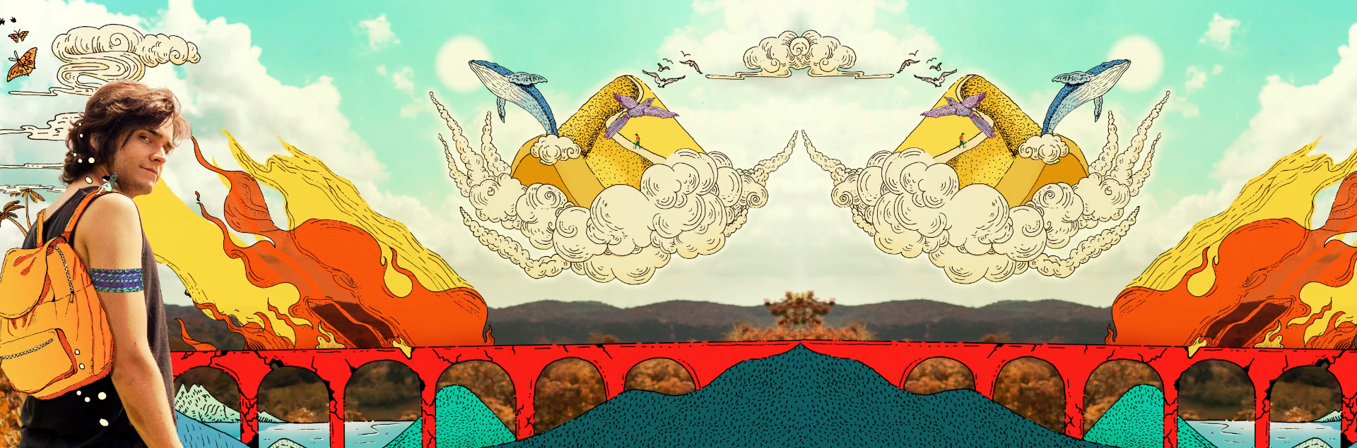 Tierra Puente Cielo es un álbum conceptual como lo explica el artista: «Tierra» es la realidad de uno, «Puente» son las decisiones que uno toma para alejarse de su realidad, y «Cielo» es la pequeña euforia que sentimos al dar nuestro primer paso hacia delante. Entonces en estas 3 partes, o 3 actos es donde existe la magia de la producción: Tierra [Seré/Cuando Reflejo/Dunas Puente [Puente No. 1/ Hola Vida] Cielo [Rompe con el Límite/Pelo Morado/ Fugaces Delicias].