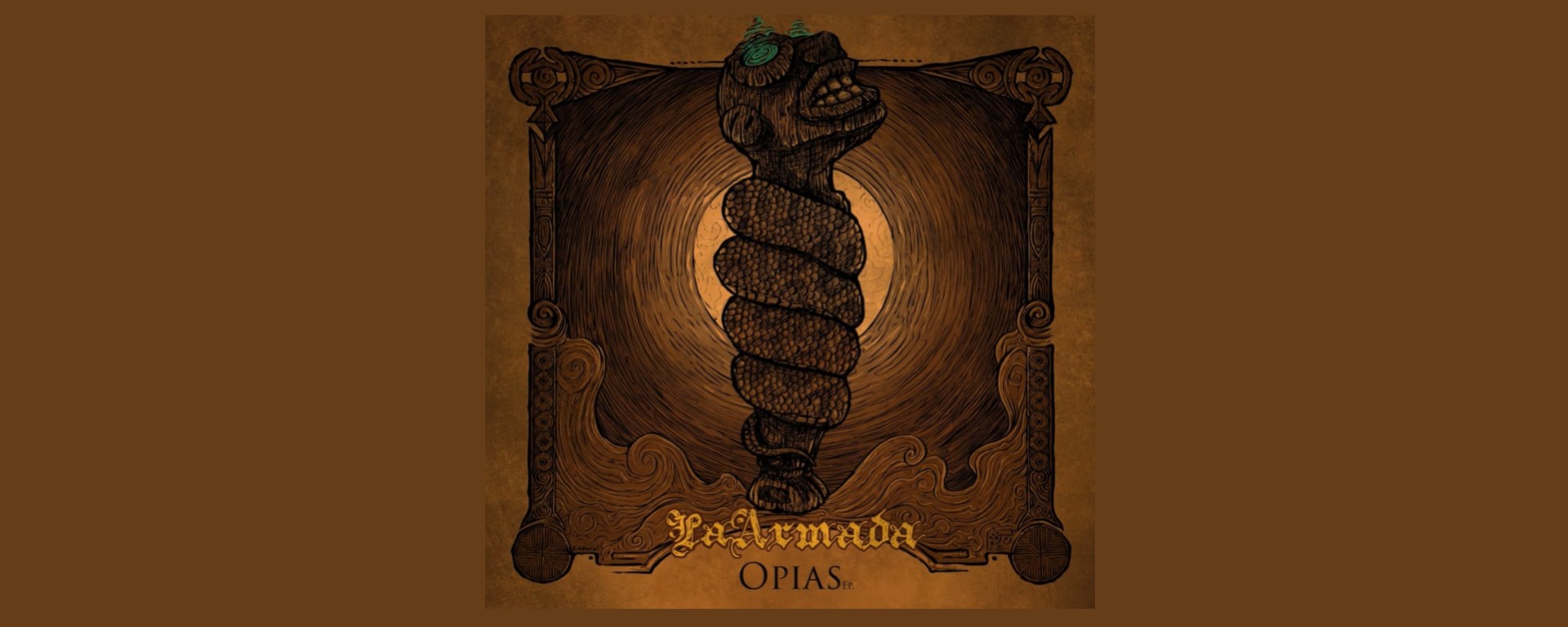 Luego de tenernos emocionados con la espera de su producción «Anti-Colonial vol.2», los muchachos de La Armada aprovechan y lanzan «Opias» un EP de 3 canciones, en donde nos muestran las ya conocidas ‘Death On Replay’ y ‘All We Know’ agregando «White Jesus» complementando este trabajo de 8 minutos con 8 segundos, que cumple el cometido de dejarnos con las ganas de escuchar más. Algo que también tenemos que destacar es la portada de esta producción a cargo del artista dominicano Eddaviel que representa parte de la cultura taína dominicana, algo que La Armada ha venido resaltando desde el principio dentro de su sello.