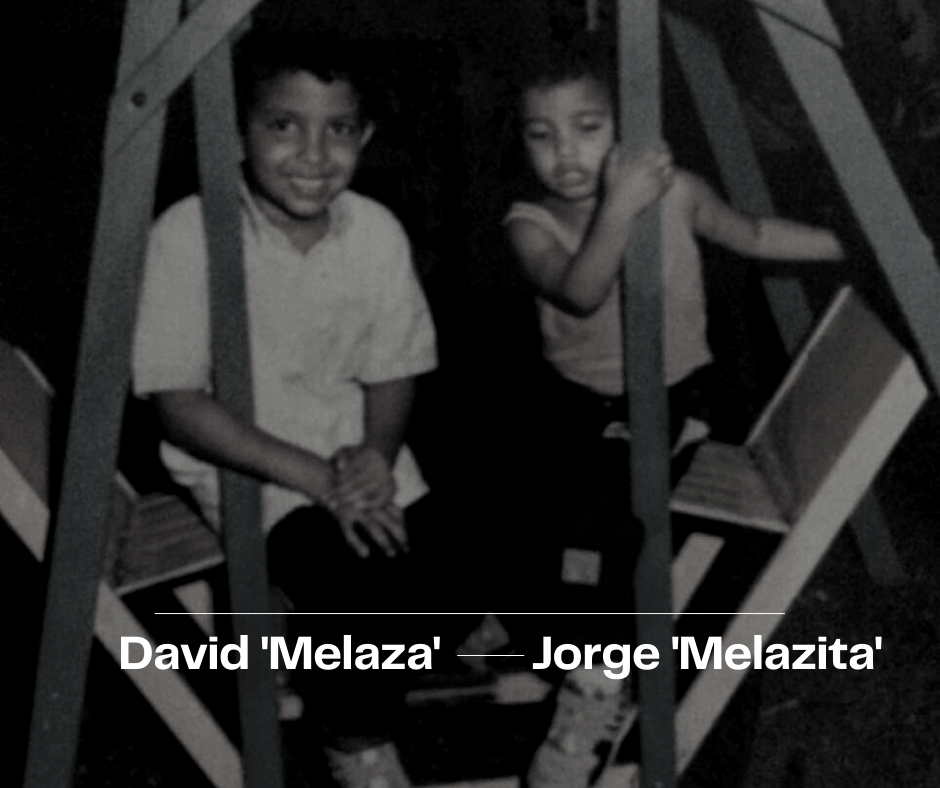 Seguir las huellas con el ejemplo de los padres es una misión de todo hijo, y más si ese camino está acompañado de música. Acá tenemos otro ejemplo, como es el caso de los hijos de Víctor Taveras, quien llegando del cibao a la capital se metió de lleno a los programas de tv nacional, y de paso llevaba a sus hijos. De ahí nace esa pasión desarrollada por David Melaza, quizá el músico que ha participado en más proyectos locales (hay que postularlo a un Record Guiness), y es que sería difícil mencionar en cuántos proyectos ha tocado con su teclado. Más fácil sería decir en cuáles no los ha hecho. Del lado de Jorge a.k.a. Melazita, quien gana su apodo por el camino que había construido su hermano años antes que él, fue parte de la agrupación pop Capital, ha colaborado y participado en varios proyectos locales como Al-Jadaqui entre otras haciéndose cargo del bajo. Jorge tambein toca la batería y percusión menor aunque el bajo se ha convertido en su instrumento de cabecera.