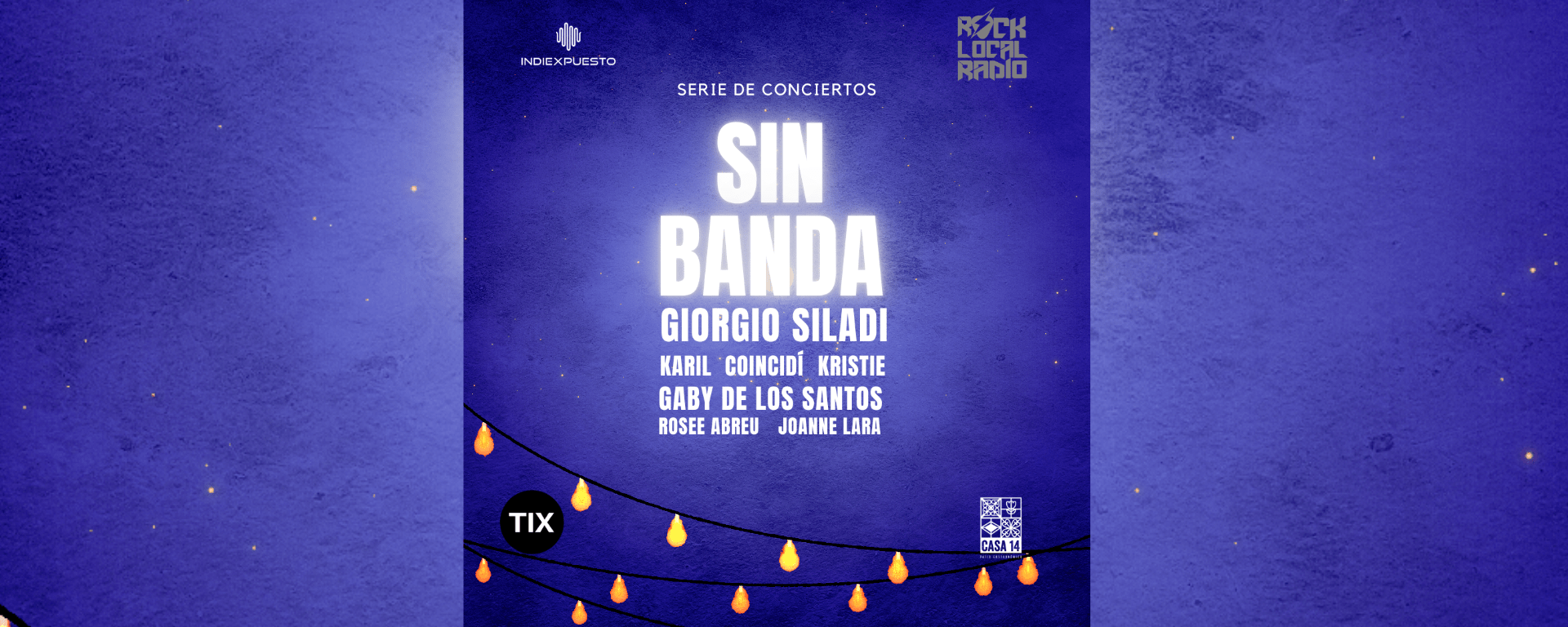 Las plataformas hermanas Rock Local Radio e IndiExpuesto llevarán a cabo una serie de conciertos titulada “Sin Banda”. Estos recitales tienen el atractivo de realizarse en formato íntimo, tanto en configuración así como con cupo limitado. El escenario elegido es Casa 14, entre los días 24 de septiembre y 15 de octubre. Los artistas que integrarán la apuesta alternativa son Giorgio Siladi, Gaby De Los Santos, Karil, Rosee Abreu, Coincidí, Kristie y Joanne Lara.