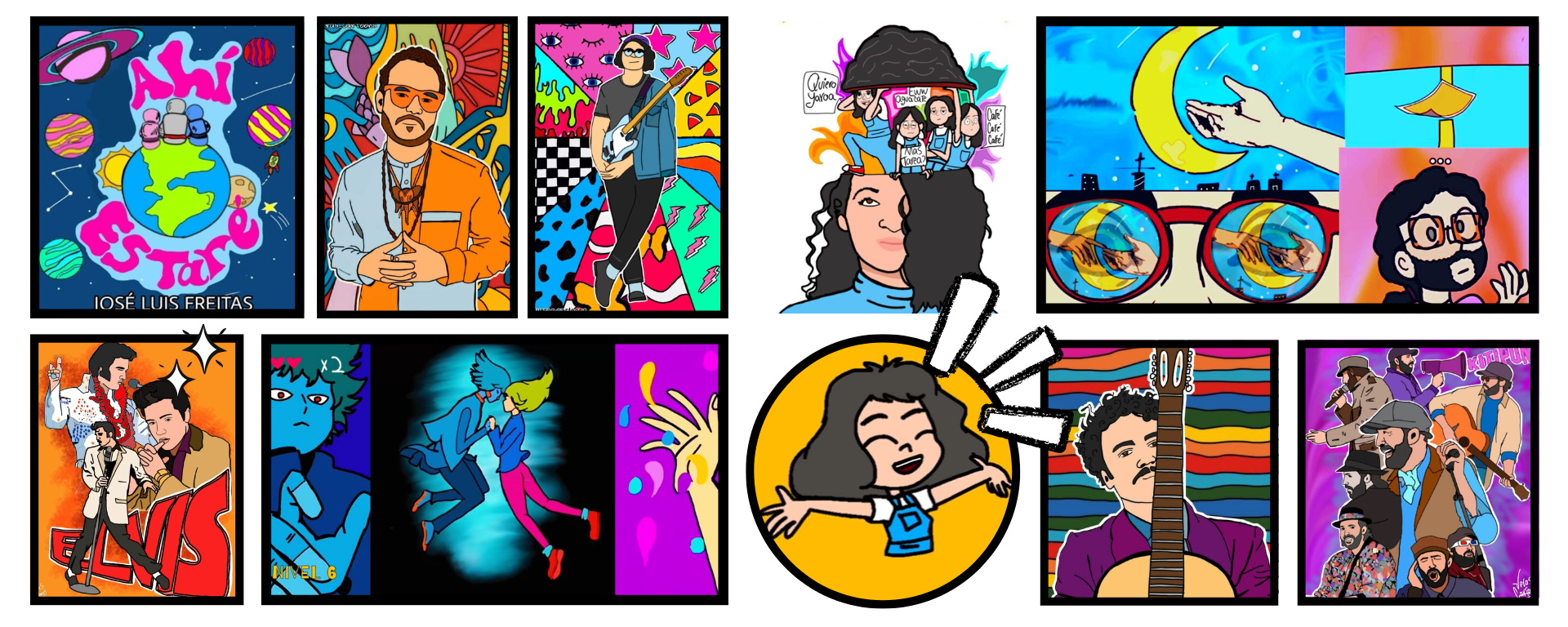 Eso ha sido un honor y un sueño hecho realidad, que tus artistas favoritos que tienes viendo y escuchando desde tu adolescencia disfruten de tu arte y que también quieran trabajar contigo es algo que yo a veces no me creo. O sea, yo con ‘Fan art a lo local‘ que son los dibujos que hago en honor a músicos locales, lo empecé porque quiero que la gente conozca a esos que han hecho y están haciendo historia con su música, o sea es como que historia de música local a través de dibujos, entonces yo nunca pensé que la serie me llevaría también a poder trabajar con la gran mayoría de artistas que he plasmado con mi arte. 💜
