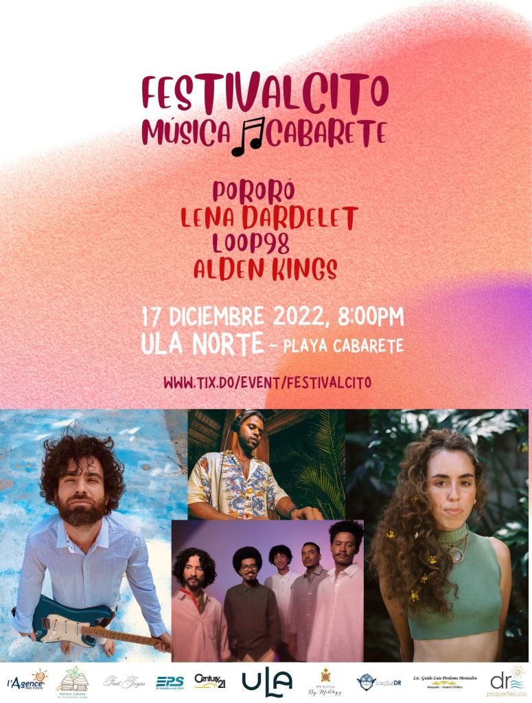 No es un secreto, los festivales musicales en el país se están convirtiendo en una opción a la hora de eventos. Para el año entrante esperamos una nueva edición de Destrucción Masiva, Solofest y el Isle of Light en el primer trimestre del año, pero aunque este 2022 todavía acaba ya para el mes de diciembre tenemos una nueva oferta naciente. Se trata del Festilvacito Música Cabarete, concebido y organizado por la artista Lena Dardelet, programado para el 17 de diciembre 2022 en Ula Norte Cabarete con la meta de crear una cultura de conciertos en la costa norte de RD, y brindar un festival de música anual de calidad, y que muestre una variedad de talentos dominicano.