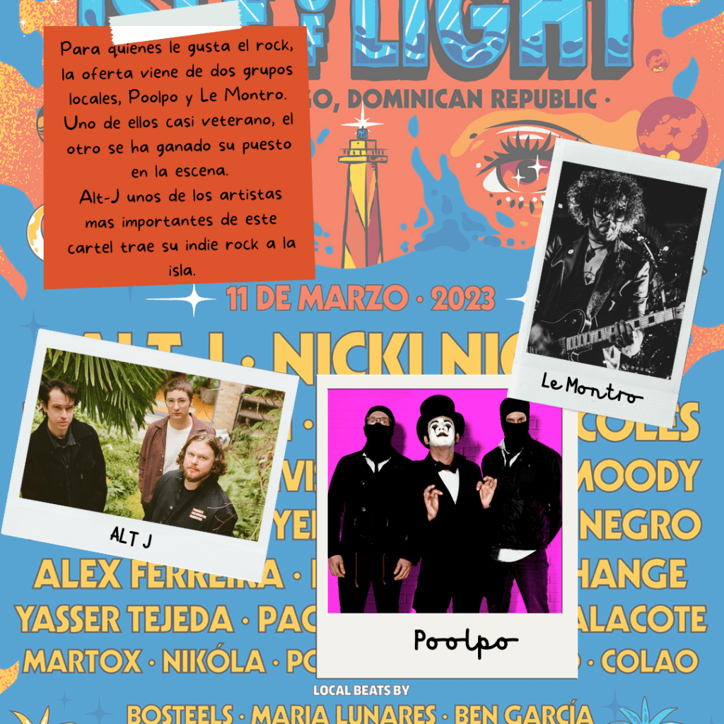 Pautado para el sábado 11 de marzo, en el ya emblemático Faro Punta Torrecilla, San Soucí, la séptima versión de Isle of Light tendrá en cartelera a más de 20 artistas y por primera vez contará con 3 escenarios, con una variedad musical entre rock, urbano, electrónica y tropical. Para esta edición, los protagonistas que también se presentan por primera vez en el país son las bandas ALT-J y Franc Moody del Reino Unido, la sensación argentina Nicki Nicole, el dúo de electrónica francés Polo & Pan, y la techno DJ Maya Jane Coles de origen inglés-japonés.