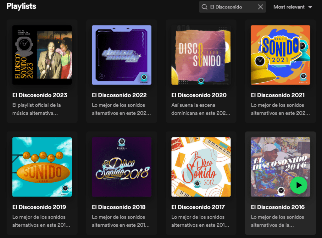 El playlist El Discosonido era un resumen sonoro del cada año, muchas veces quedando olvidado con el tiempo, y es o eso que decidimos iniciar este año con El Discosonido 2023 un playlist que va en crecimiento, actualizado semanalmente con las canciones de la escena, facilitandole a oyentes como a los artistas tener un espacio fresco para conocer como a sonando la isla.