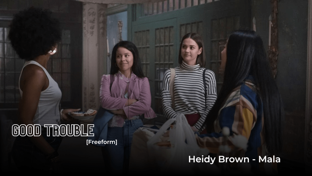 Good Trouble es una serie de televisión estadounidense que debutó en Freeform el 8 de enero de 2019. Es una serie derivada (o Spin off) de la exitosa serie The Fosters. La idea principal es continuar conociendo la vida de Callie y Mariana, mientras se embarcan en la siguiente fase de su vida de jóvenes adultos. Ambas se aventuran hacia Los Ángeles para comenzar sus vidas independientes y emprender viajes separados pero interconectados para cambiar el mundo. Van a tener todos los ‘buenos problemas’ que pueden manejar. La banda sonora de esta serie en sus 5 temporadas nos lleva por todos lados desde Morcheeba, Chromatics, Ghost Funk Orchestra, Billie Eilish, Lizzo, Tash Sultana, Can, Perfume Genius, Jennifer Lopez, Mariachi Flor De Toloache, The Head and the Heart, Arcade Fire, y es entonces que nos encontramos con la rapera dominicana Heidy Brown en capitulo 11 de la segunda temporada, al igual que la banda nuyorquina Las Rosas liderada por el dominicano Jose Aybar.