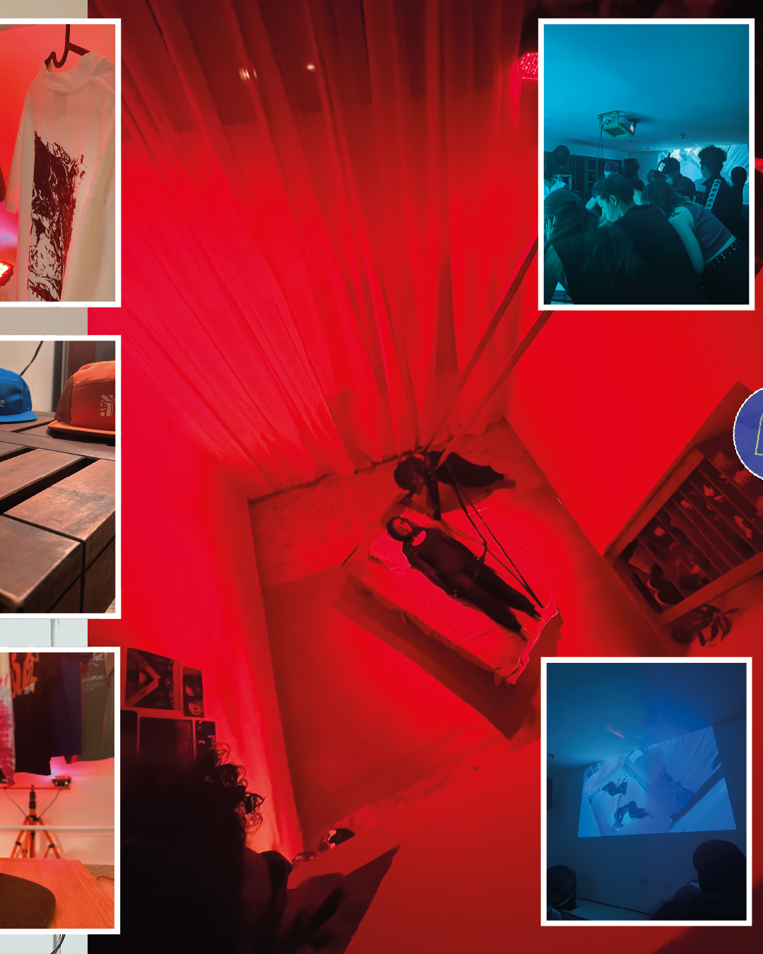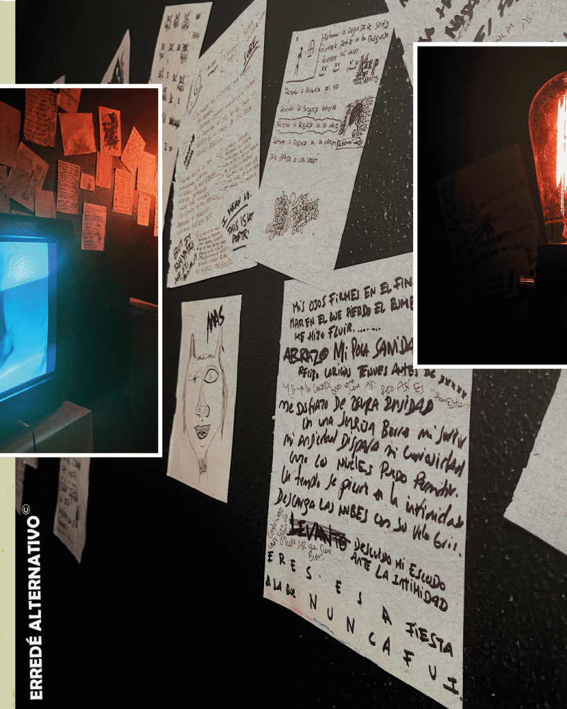Luego, las instalaciones de arte de Clementina Wallis, Marcía Perez, Alina Bueno y Alex Bello se abrieron al público. Estas obras tenían como objetivo proporcionar un reflejo de lo que sucede en la mente de un artista, no solo en el proceso creativo, sino también en lo cognitivo. Desde dibujos que transmitían los pensamientos intrusivos que inundan nuestra toma de decisiones, hasta todos esos ruidos constantes sin sentido alguno, y un conjunto de luces y sonidos que alteraban una y otra vez nuestro subconsciente.