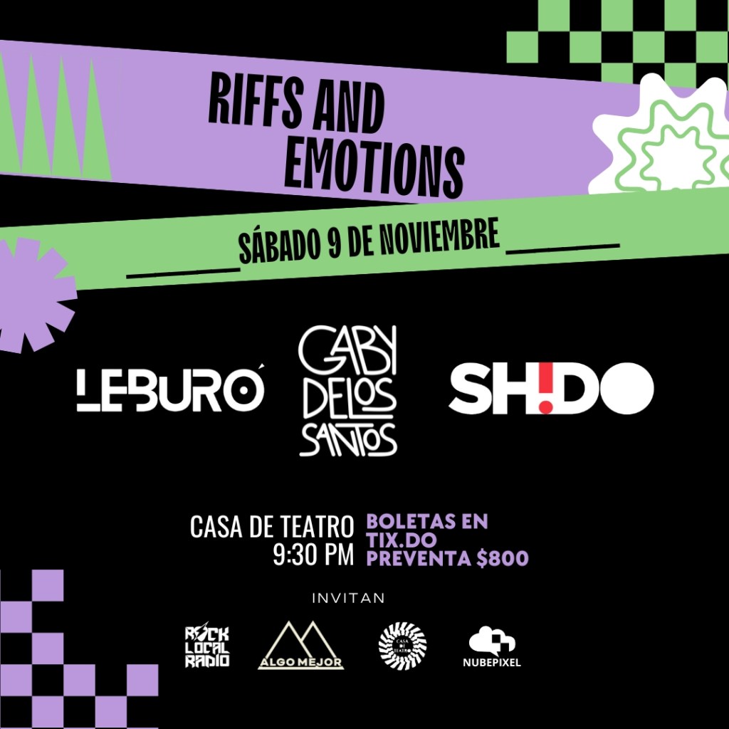 Casa de Teatro se prepara para recibir el concierto «Riffs and Emotions», que reunirá a tres propuestas destacadas de la escena alternativa dominicana: SHIDO, Leburó y Gaby de los Santos. Este evento, programado para el sábado 9 de noviembre a las 9:30 p.m., contará con boletas ya disponibles a través de Tix.do.