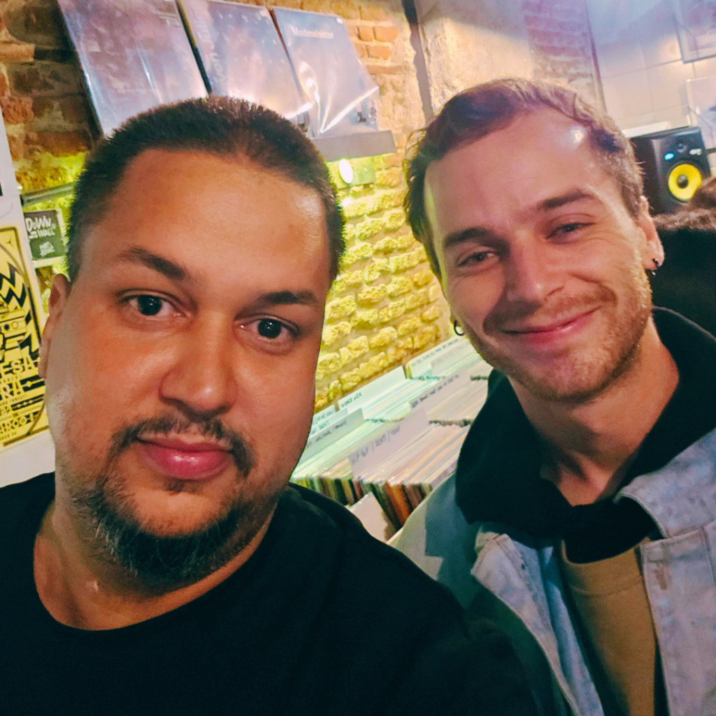 Días después, durante mi recorrido por vinilerías de Madrid, la gran Marilians Records, Bajoelvolcán, La Gramola (donde encontré un disco de Charytin en casi 30 euros) la famosa La Metralleta, la futuristica Ater Cosmo, llegué a El Almacén de Discos, especializada en música electrónica. Allí tuve la oportunidad de encontrarme con Carlos Zouain, creador del proyecto dis.Tant. Conversamos sobre su obra (el mas reciente lanzamiento) ‘desviaciones’ y su próximo proyecto Swimming Syndrome, en colaboración con su pareja Kaitlin Bruno, mostrando cómo la escena electrónica también se nutre de conexiones personales y creativas que atraviesan fronteras.